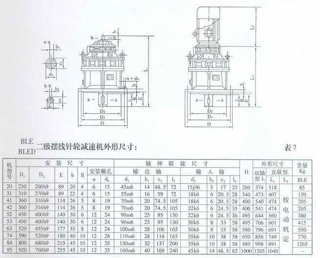 注:擺線針輪減速機(jī)根據(jù)用戶要求,可匹配調(diào)速電機(jī)、制動(dòng)電機(jī)、防爆電機(jī)、普通Y系列電機(jī)等。根據(jù)減速機(jī)機(jī)座號的大小匹配不同功率的電機(jī),(0.04kw)-75kw不等。